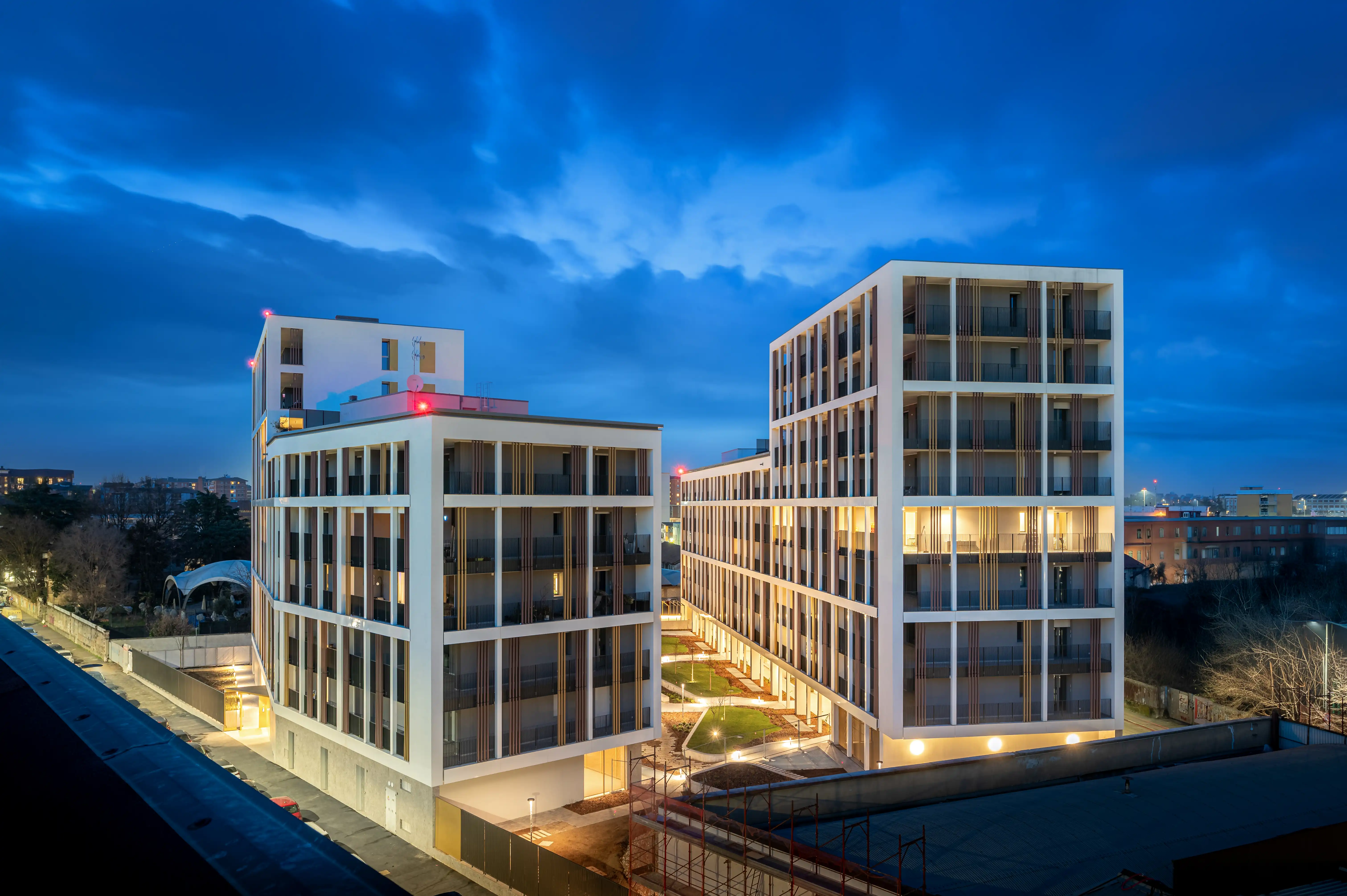 Lambrate Twin Palace è un nuovo complesso residenziale dal design contemporaneo, pensato per chi cerca un investimento solido o una casa di qualità a Milano. L’architettura si distingue per la verticalità dei brise-soleil e dei parapetti in metallo, elementi raffinati che garantiscono privacy, comfort e protezione dalla luce diretta. Il progetto si sviluppa in due edifici – Oro, in via Sbodio, e Ambra, in via Massimiano – che abbracciano un giardino interno riservato, uno spazio verde di autentica bellezza e quiete. Linee leggere, cromie luminose e materiali ricercati definiscono una struttura pensata per valorizzarsi nel tempo, ideale sia come abitazione principale sia come opportunità immobiliare.